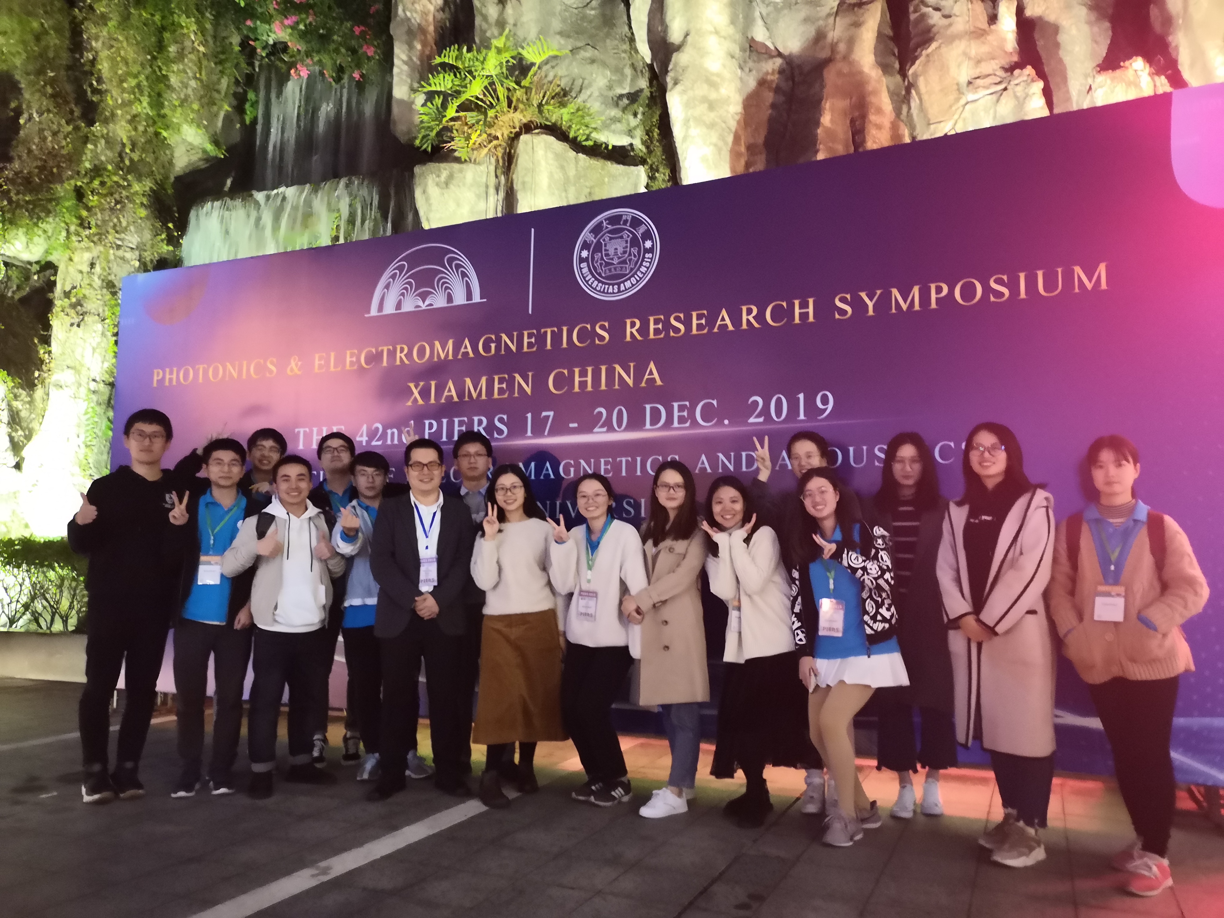 2019 PIERS Xiamen Left to right: Yuhang, ZhuShan, Chuanjie, Yangyang, Pengfei, Shiming, HY, Zhanlei, ChenYing, Huiyan, Yali, Sicen, Qilin, Xiaoting, Shuwen, XiaoWen, QinYao. Weicong...